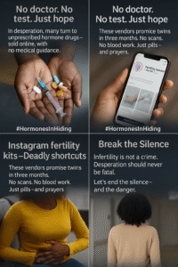 “These women are not being monitored. They’re taking hormonal drugs that can disrupt ovulation cycles, damage their reproductive organs, or worsen undiagnosed conditions. Most of the so-called ‘miracle’ drugs contain steroids, expired Clomid, or counterfeit estrogen pills,” she warns.