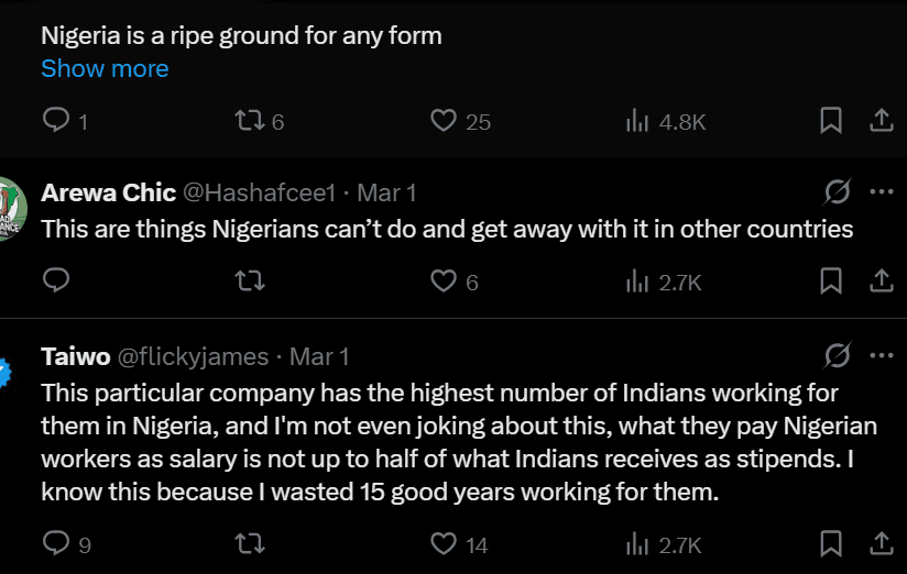 Some former employees have also raised concerns about salary disparities and unfair treatment at ARAP. Taiwo, a former worker, revealed on social media that the company employs a large number of Indian staff in Nigeria and reportedly pays Nigerian workers less than half of what foreign employees earn. He reflected on his experience, stating that he “wasted 15 good years working for them,” underscoring longstanding frustration over compensation and workplace fairness.