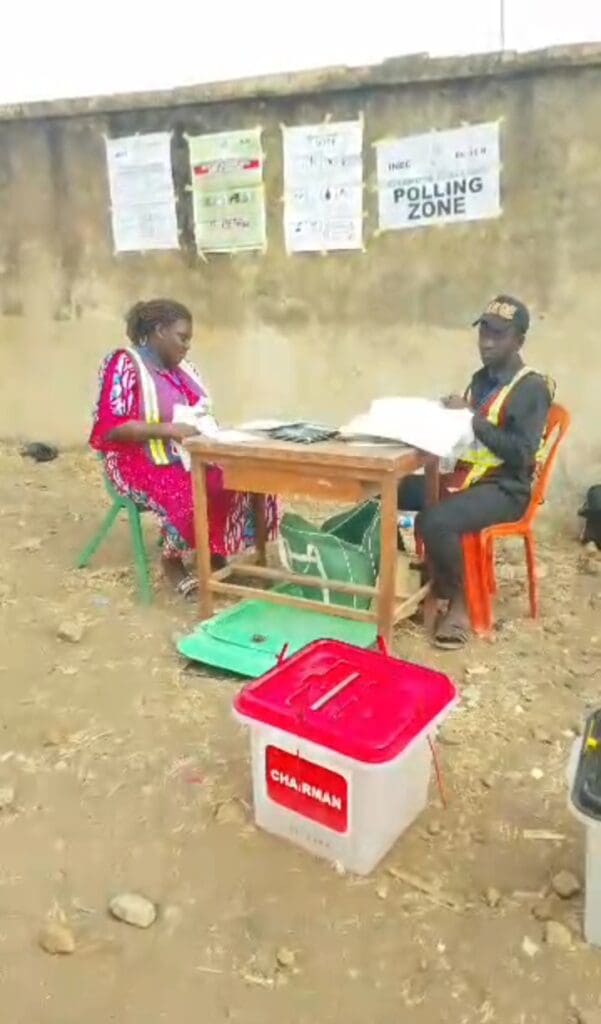At Chief Palace, Katampe Street, Kubwa, as well as Kubwa Primary School 2, Polling Unit 046 at the Primary School football pitch, and Polling Unit 044 in front of the administrative block of Kubwa Primary School, chairs and canopies had not been set up, leaving voters standing and waiting.